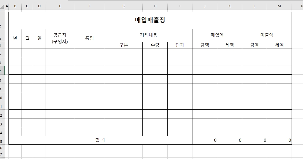 매입매출장 엑셀 양식 만드는 방법 및 사용 방법